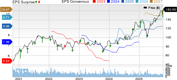 Morgan StanleyMicrosoft's stock reached an all-time high of $166.77 on the previous day after its impressive third-quarter 2025 results, which showed strong performance in capital markets. The company's earnings per share of $2.80 increased by 49% compared to the previous year and significantly exceeded the Zacks Consensus Estimate of $2.08.